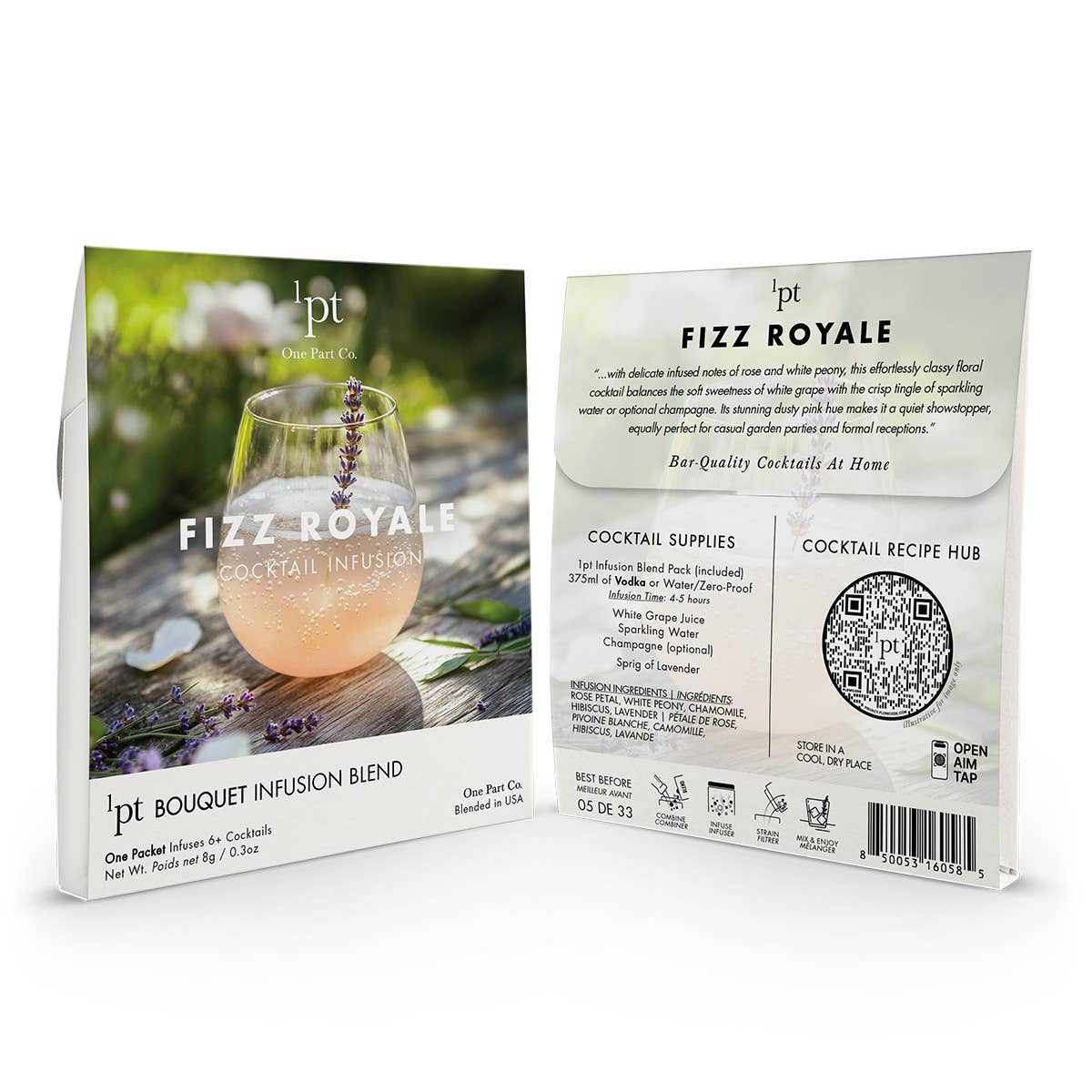 About this Fizz Royale vodka cocktail: with delicate infused notes of rose and white peony, this effortlessly classy floral cocktail balances the soft sweetness of white grape with the crisp tingle of sparkling water or optional champagne. Its stunning dusty pink hue makes it a quiet showstopper, equally perfect for casual garden parties and formal receptions.