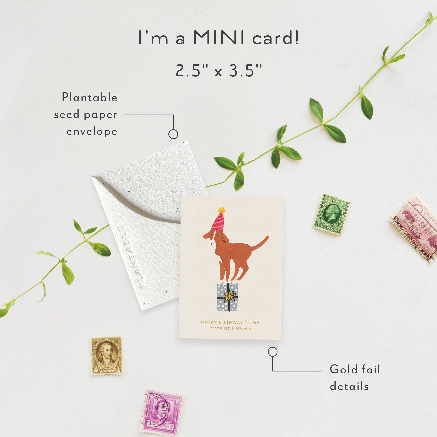 Birthday Dog Sprout - Bday Mini Greeting Card (2.5" x 3.5")