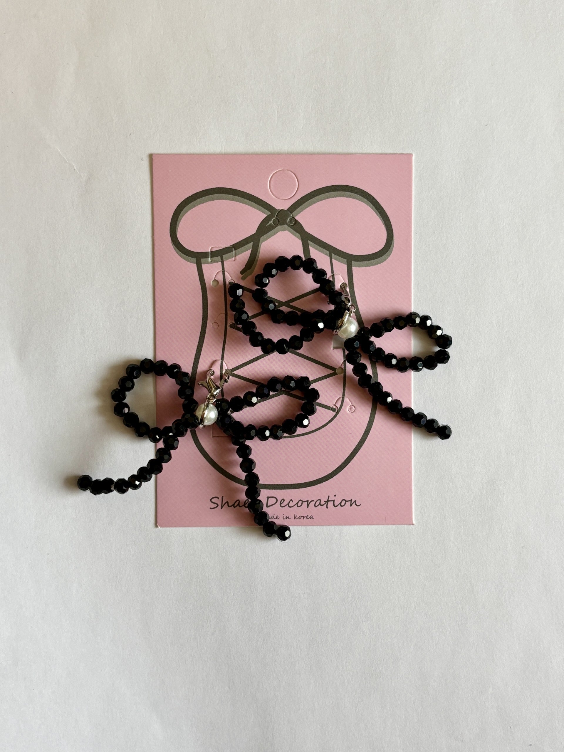 Add a touch of daring to your shoes with the Black Beaded Bow accessory! Featuring a bold beaded design with a stunning pearl centerpiece, this accessory is both cute and fun. Elevate your style and step out of your comfort zone with this unique addition to your shoe collection!