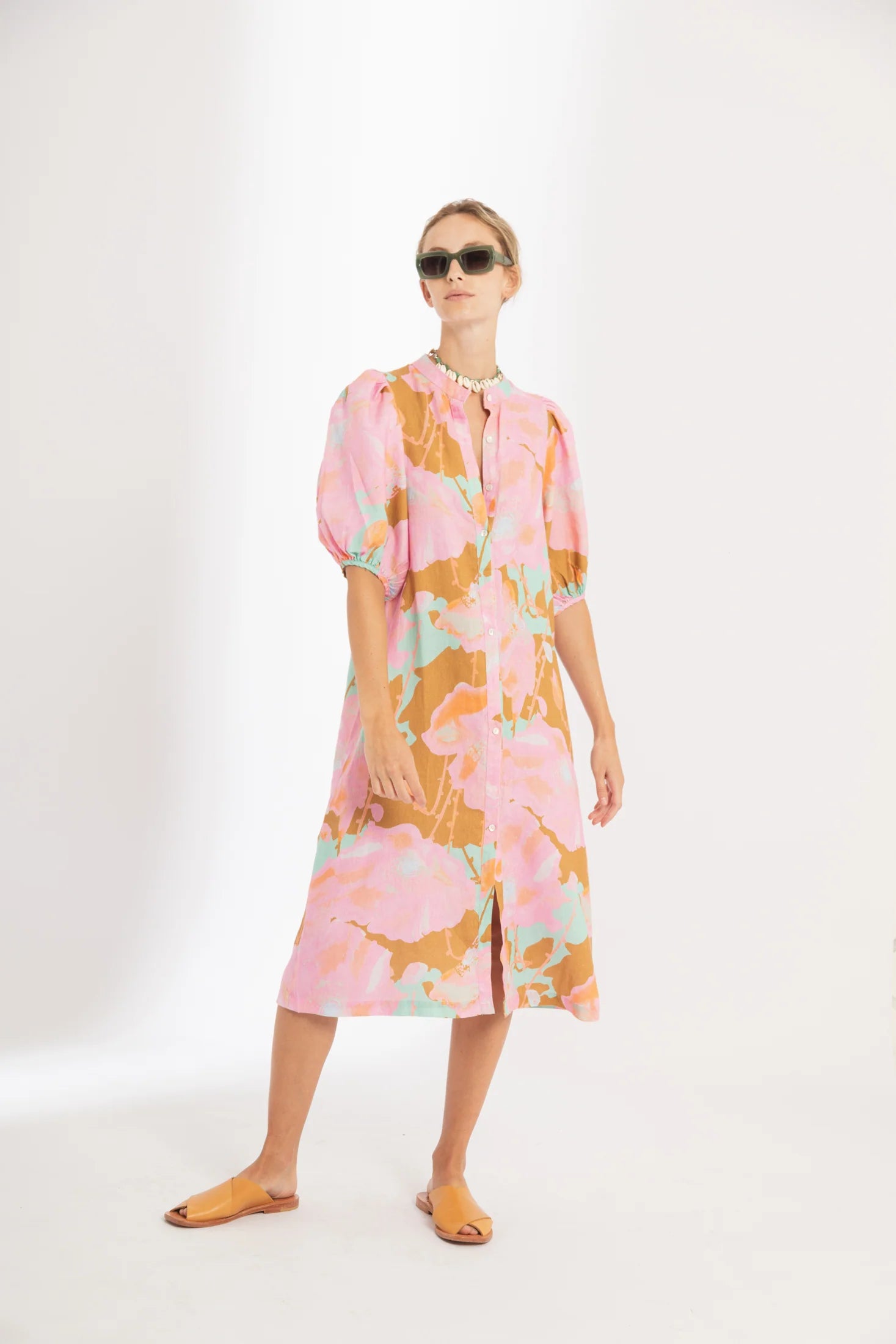 The Bubble dress made of 100% linen is a very flattering piece for any occasion. With a mao neck and puff sleeves that accentuate the A-line silhouette to create a feminine shape.