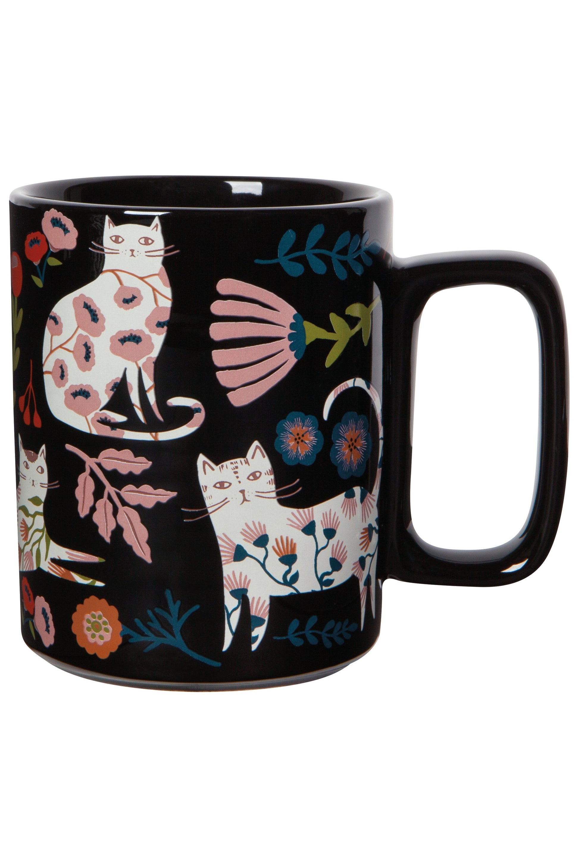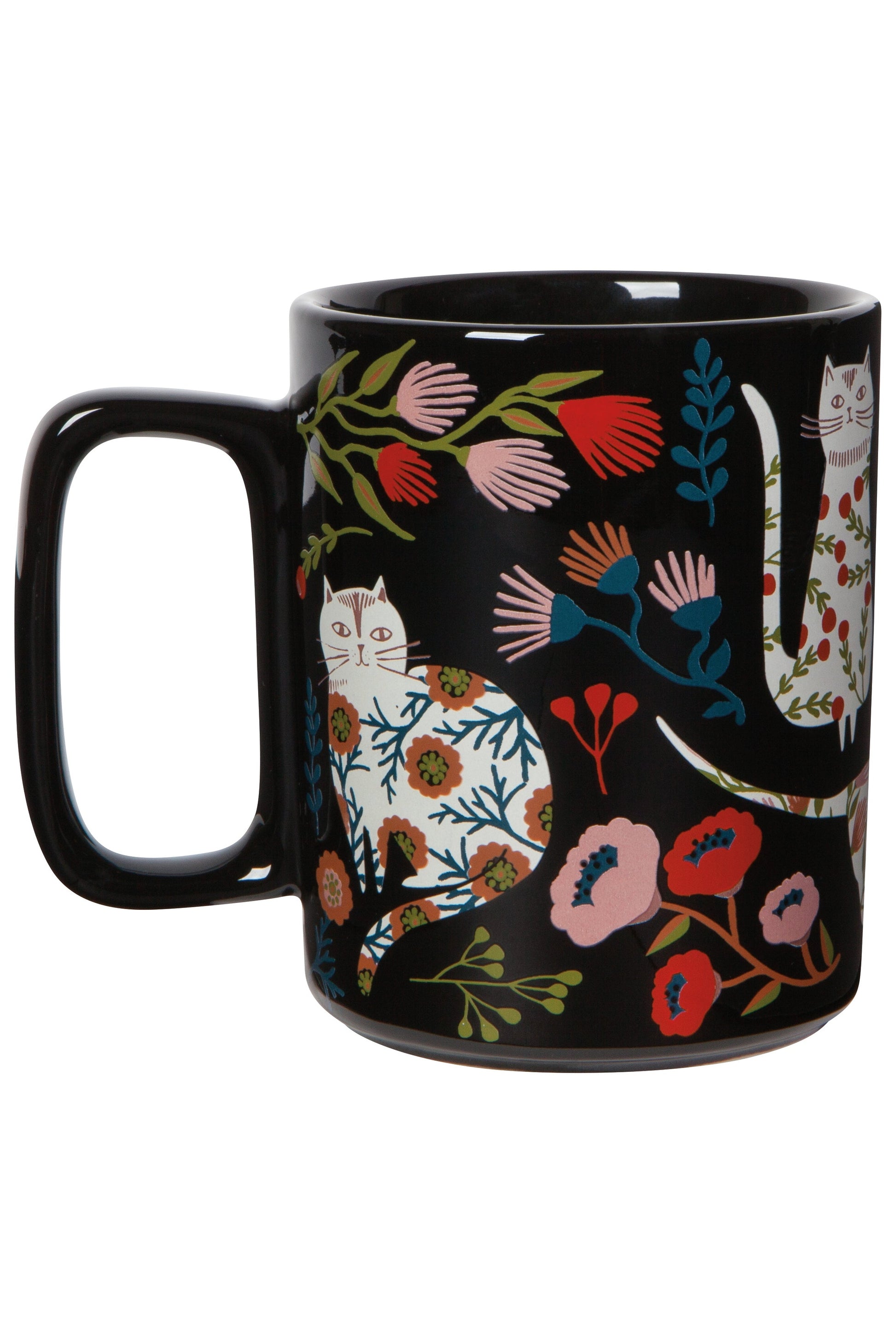 - This modern mug features a unique rectangular handle.