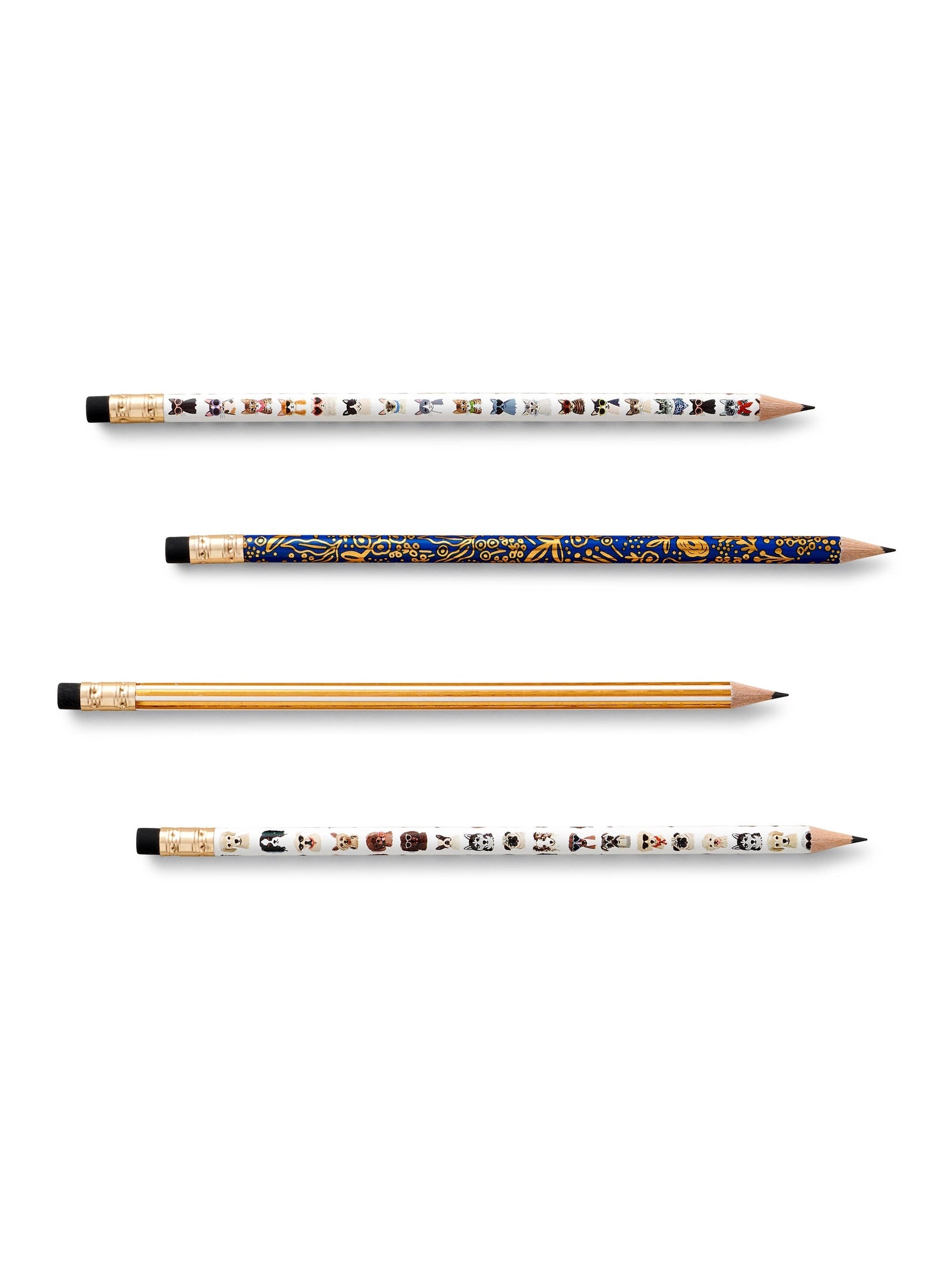 Our illustrated cats and dogs will help you out with your morning crosswords or pop quizzes. Our 12-piece, pre-sharpened writing pencil set includes three of each design with black erasers.