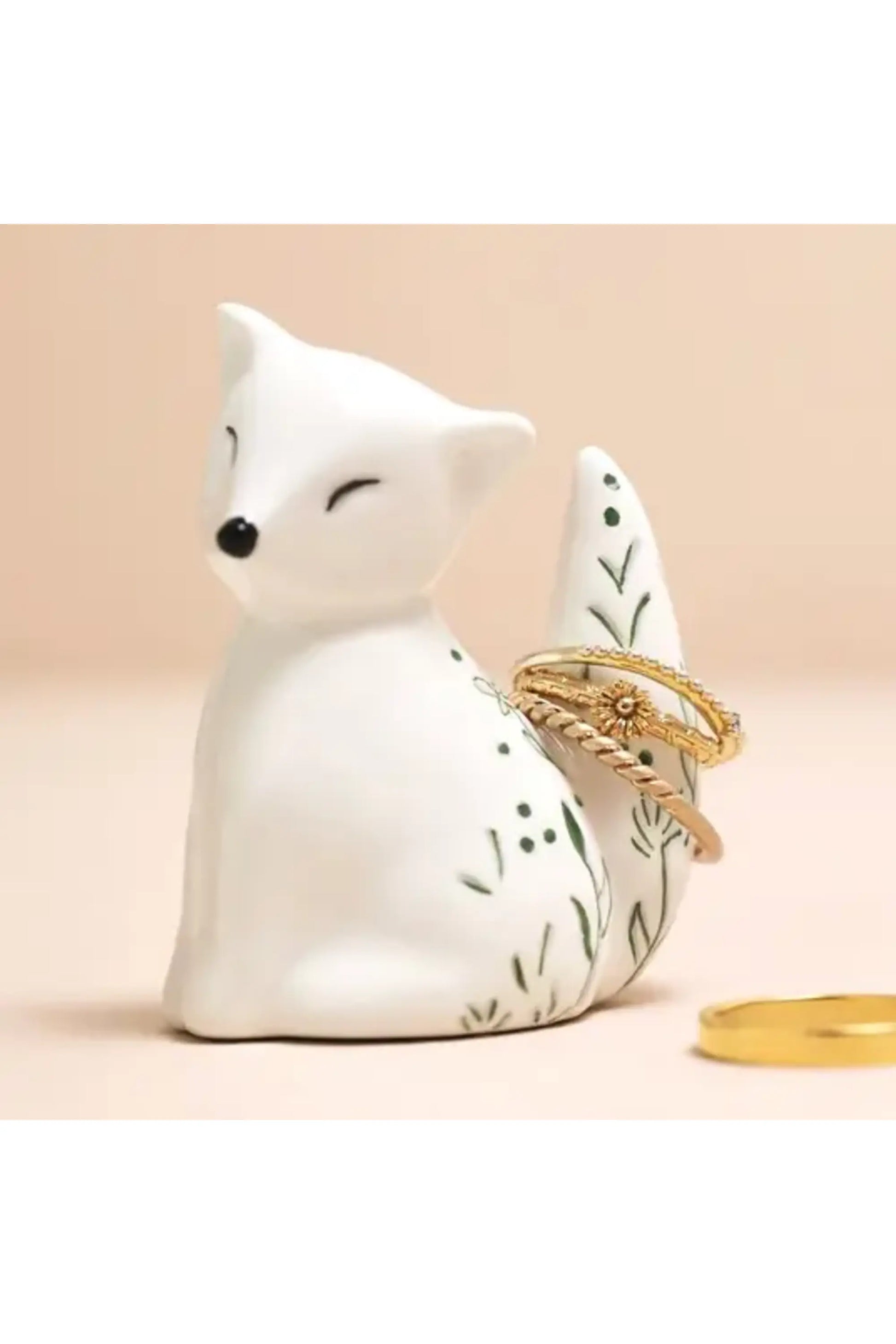 This super sweet little ring holder is the perfect way to add some animal-themed decor to your home! In a sitting position, this happy little mammal is ready and waiting to display your favourite rings on his tail. In a glossy white ceramic, the debossed green details on the tail add an extra special touch!
