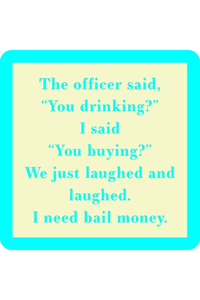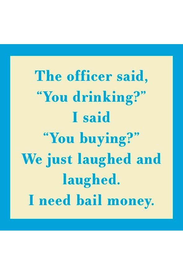 “The officer said ‘You drinking?’ I said ‘You buying?’ We just laughed and laughed. I need bail money.”