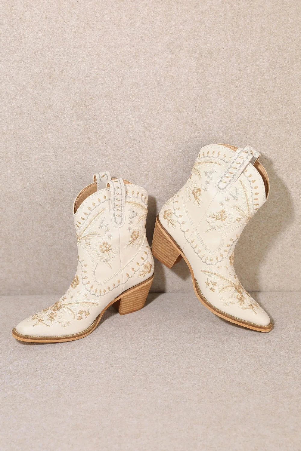 Jump into fun and fashion with CORRAL Cowboy Boots in White! These Western-inspired boots feature a classic pointed-toe style and an eye-catching floral design. Stand out from the crowd with these bold boots that are perfect for every season! Style tip: Pair these boots with a flowing skirt or your favorite pair of jeans for a boho-chic look.
