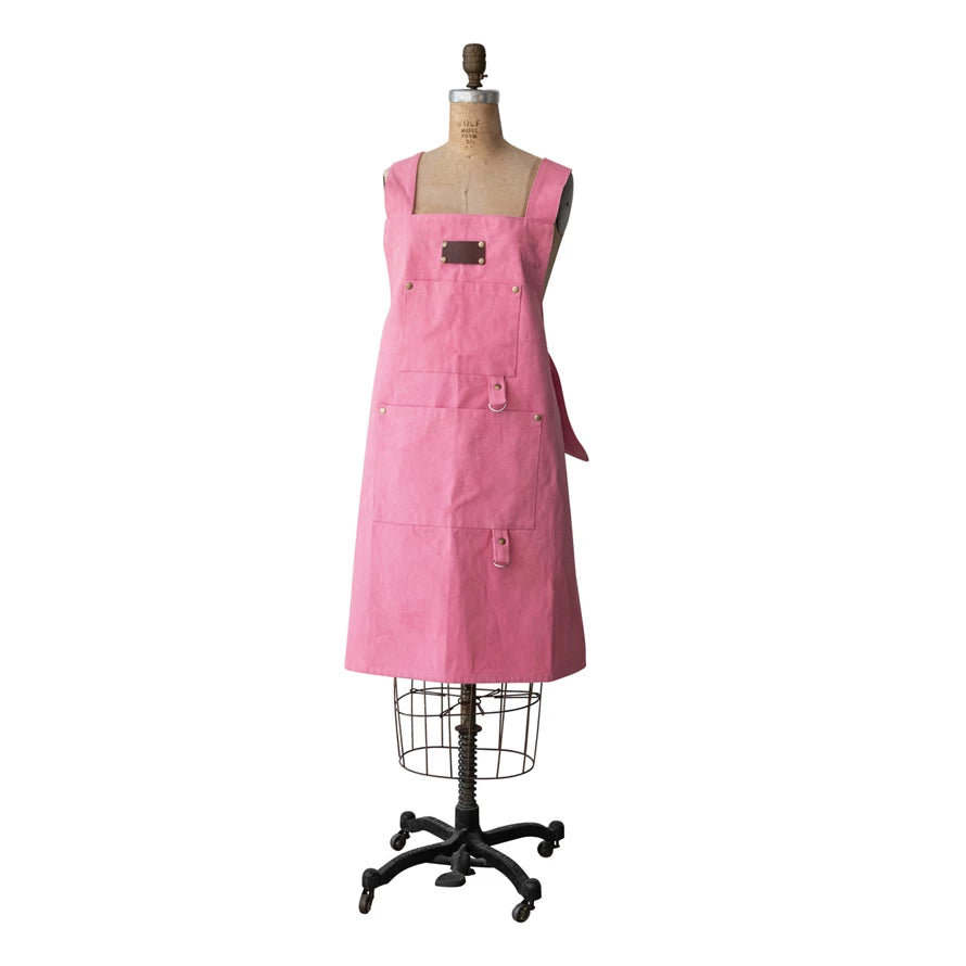 This apron is the perfect gift for anyone that loves spending time in the kitchen. Made out of cotton, this apron has a pretty pink color and a cross back. This apron also has pockets for easy storage.