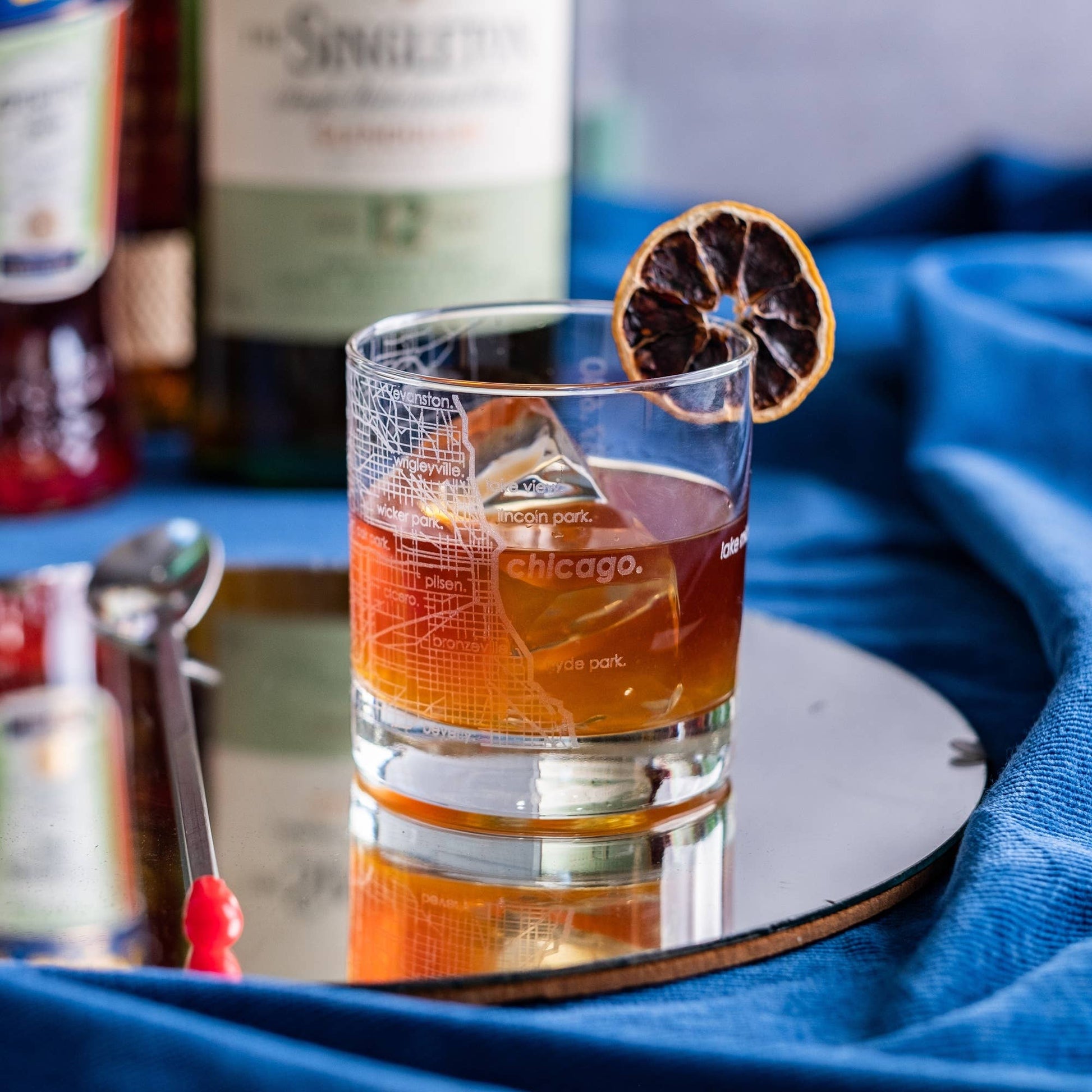 Calgary Map Rocks Glass is an 11 oz old fashioned glass versatile for cocktails or good bourbon or scotch. Each glass is precision-etched by our skilled engravers with our beautiful map designs to show your favorite city or town in crisp detail and stunning clarity. Each Custom Map Glass comes with the GPS coordinates for the selected location engraved up the side.