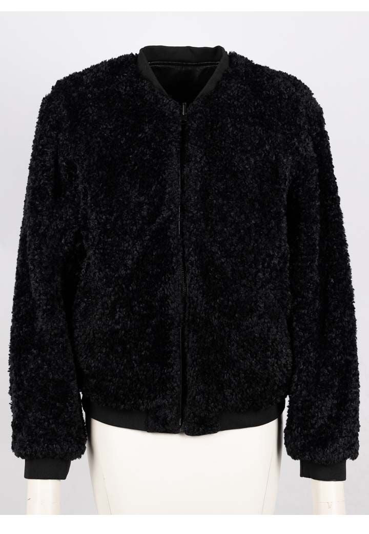 This reversible jacket allows you to switch up your style in seconds, wear the leather side of the jacket for a cute "boyfriend's leather jacket" look or reverse it to reveal a cozy teddy bear jacket. Stay warm and stand out in this oversized statement piece. Go ahead, live on the edge!