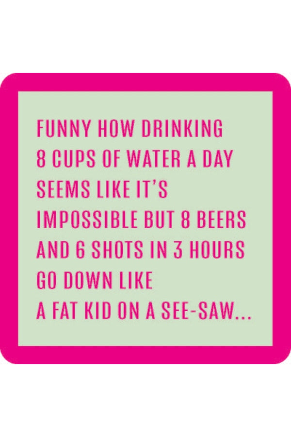 “Funny how drinking 8 cups of water a day seems like it’s impossible but 8 beers and 6 shots in 3 hours go down like a fat kid on a see-saw…”
