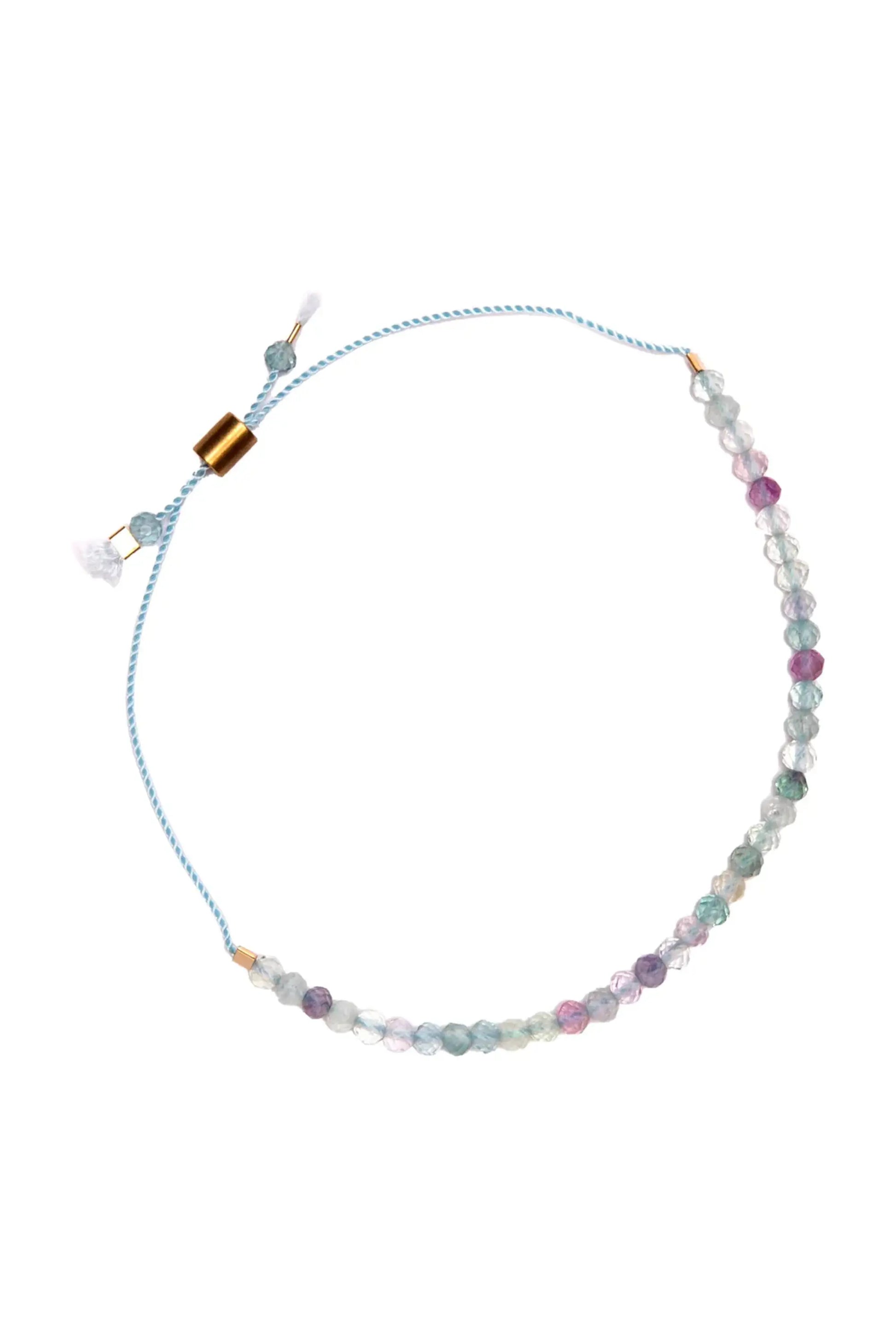 Fluorite Stone 9" adjustable bracelet. Gemstones approximately 3mm thick.