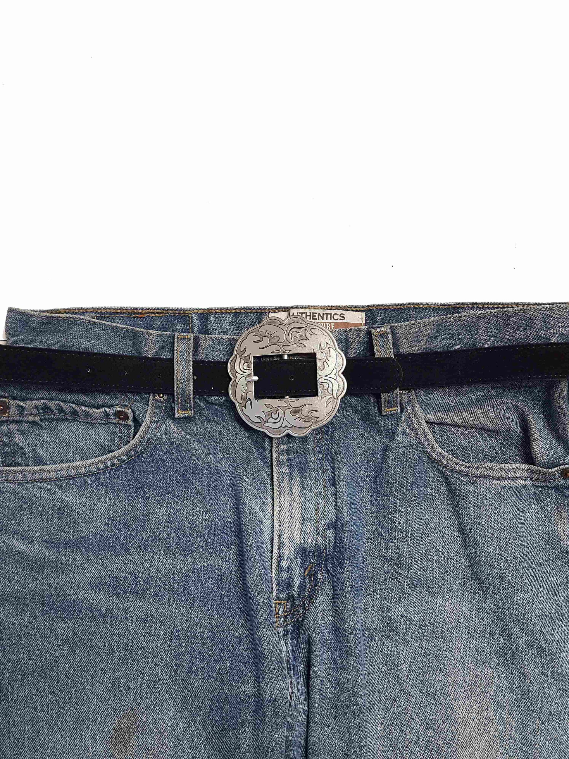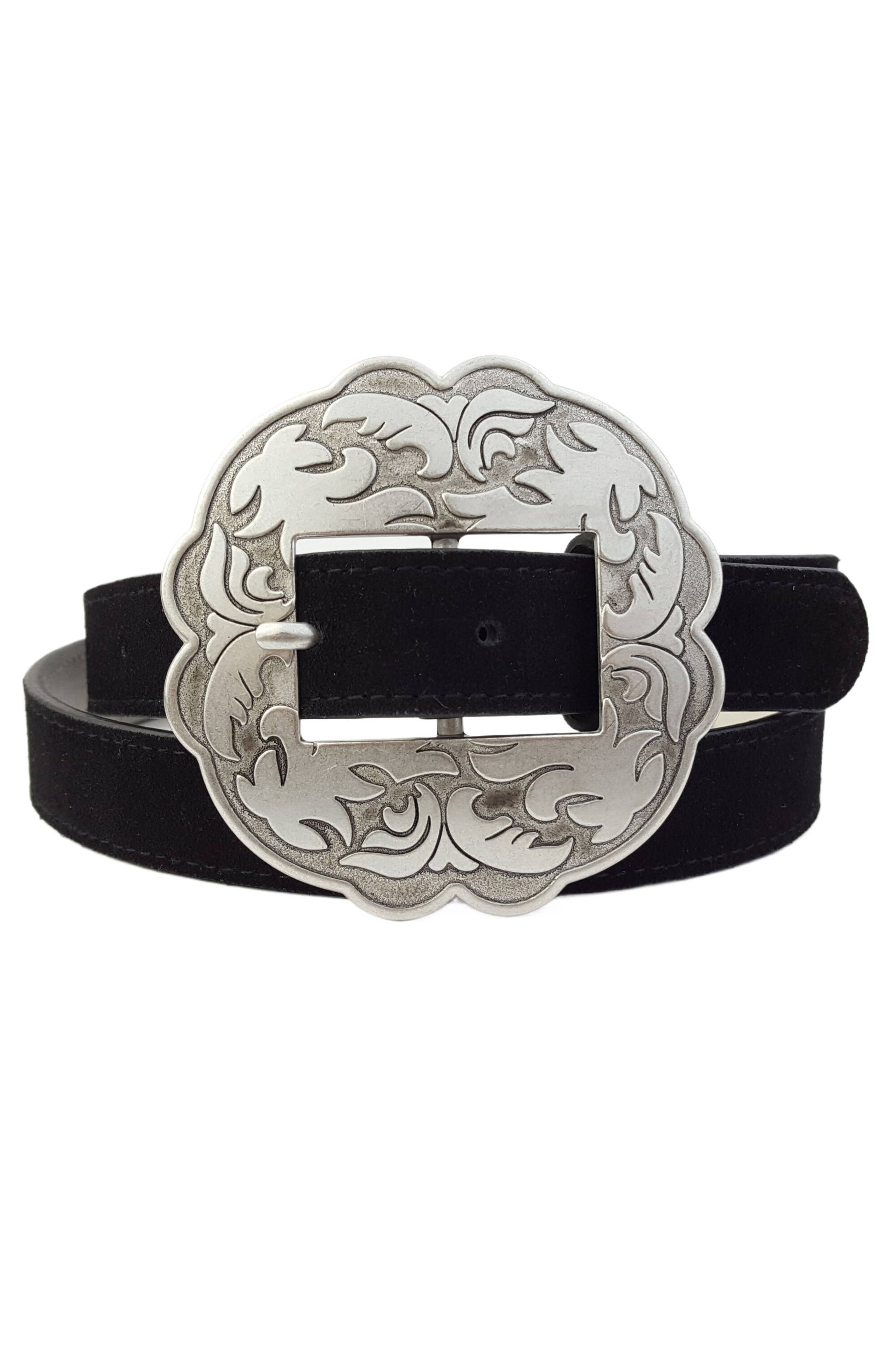 Genuine Suede Leather Belt w. Western Floral Buckle