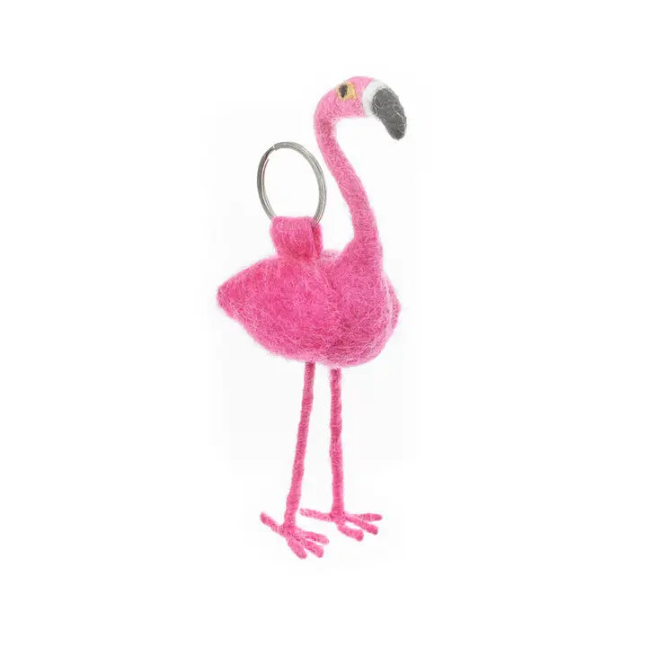 Bring a pop of colour with you wherever you go with this fabulously sassy Flamingo keyring! Needle felted body with an adjustable wire neck and legs. She has been brought to life using traditional needle felting techniques by our amazing Nepalese artisans.