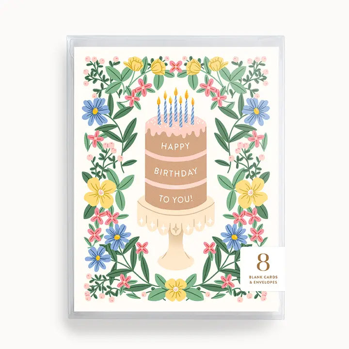 Celebrate a special birthday with this beautiful birthday cake floral birthday card. Featuring an intricate design of colorful flowers and a delicately decorated birthday cake, this card is the perfect way to show someone you care on their big day.