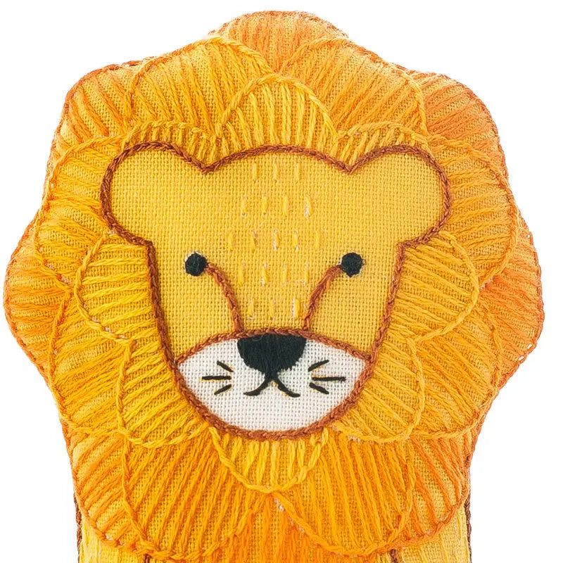 Lion is a Level 2 pattern, great for beginners because it features basic stitches used sparingly. All Kiriki patterns are screen printed by hand with vibrant, water-based inks right onto the fabric so no tracing or transferring is ever required!