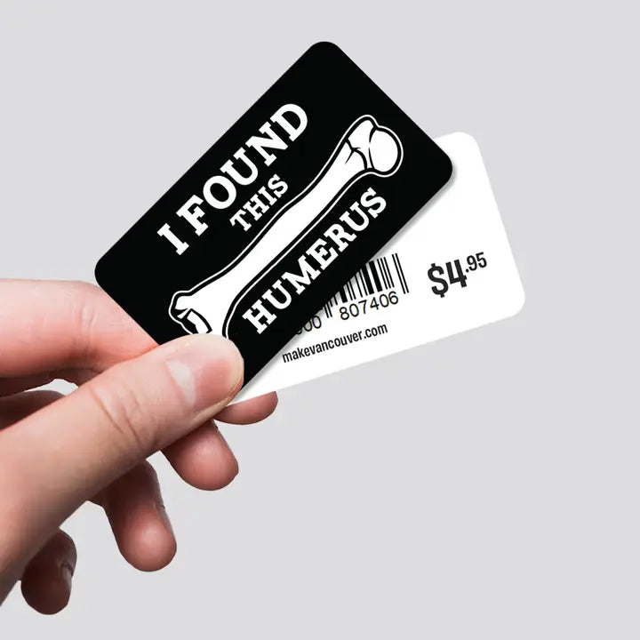Add a playful twist to your stuff with the "I Found This Humerus Sticker." Featuring a cheeky nod to the humerus bone, this fun little sticker is perfect for anyone who loves a good pun. Stick it on your laptop, water bottle, or notebook to share a bit of bone-tickling humor wherever you go!