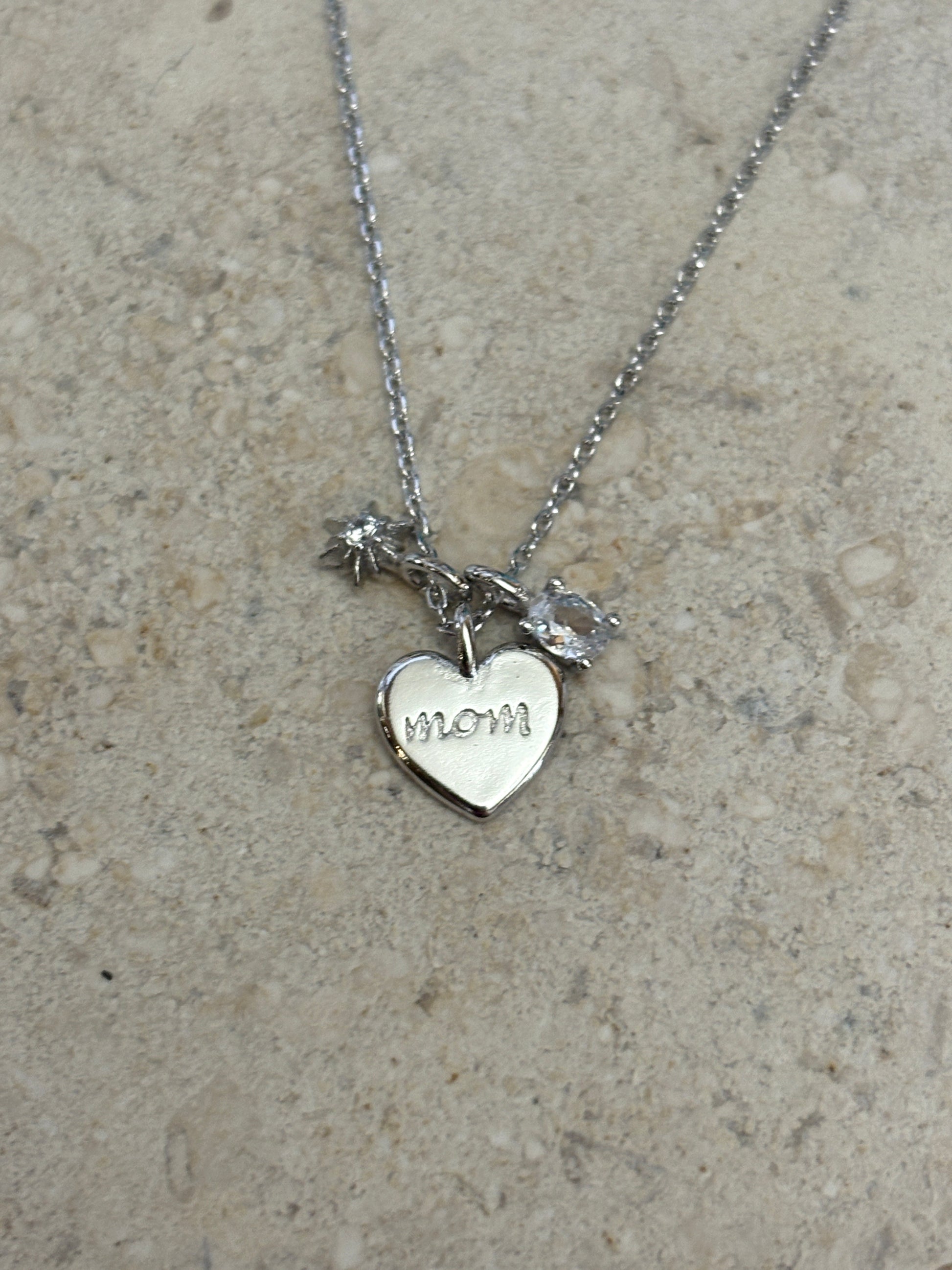 Show your love for Mom with this charming necklace featuring a heart-shaped "Mom" charm. A perfect gift to show your appreciation for all that your parent has done for you. Show them how much they mean to you with this unique piece.