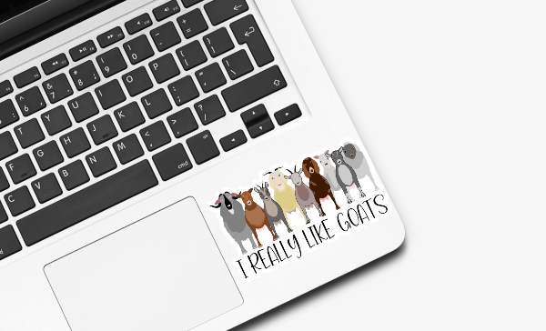 I Really Like Goats Sticker is approximately 3.5 inches in size.