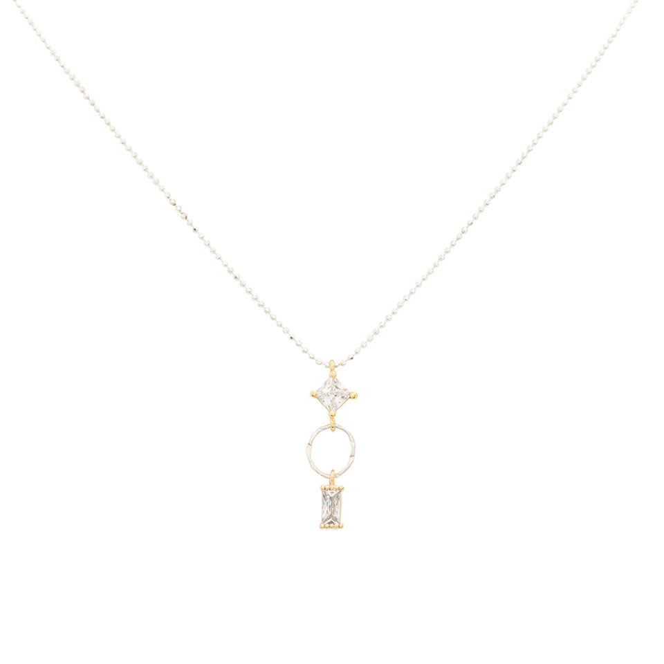 Sparkling cubic zirconia crystals make this faceted, sterling silver ball chain and pendant necklace a stand-out addition to your wardrobe. Mixed metal perfection!