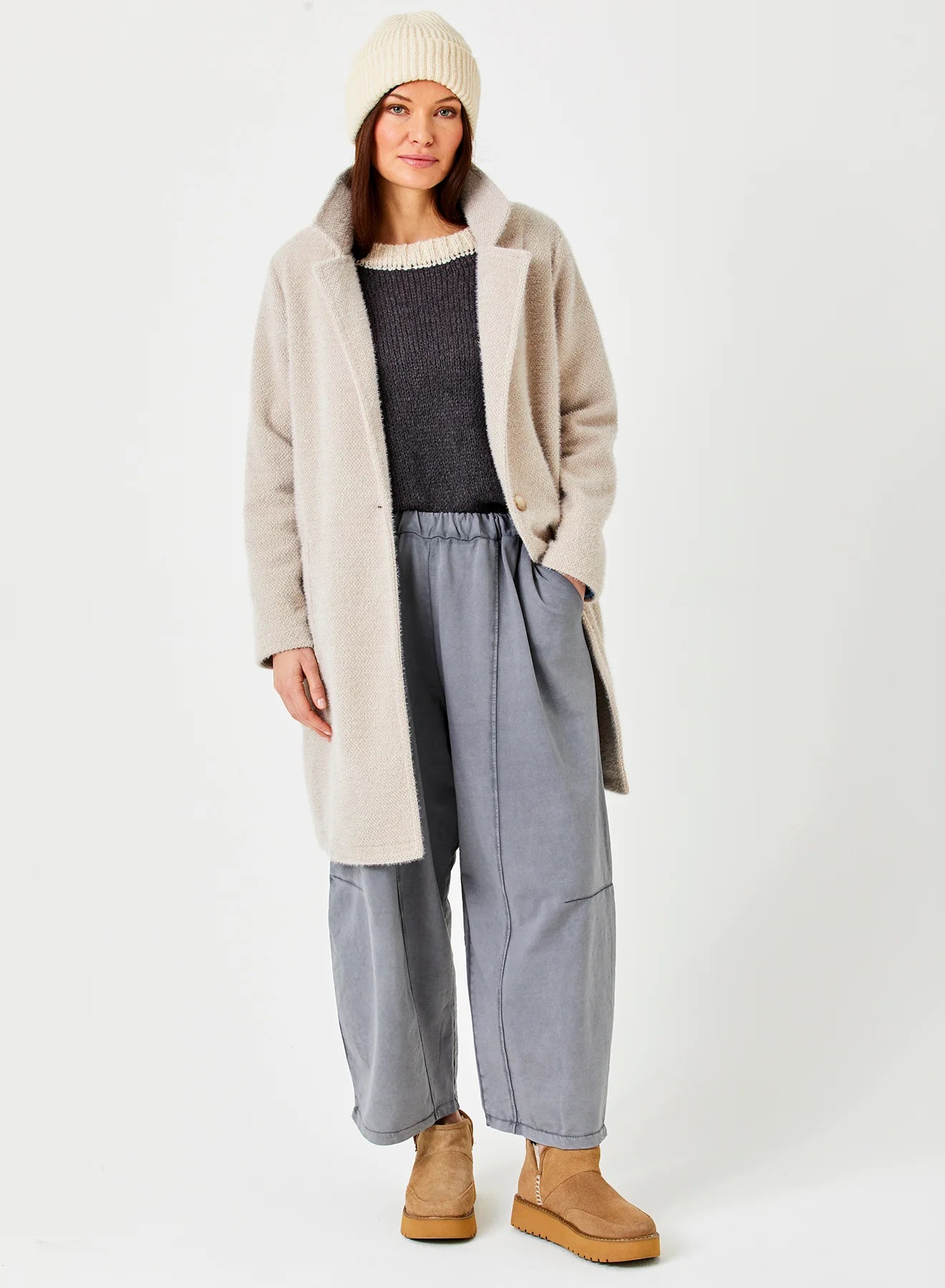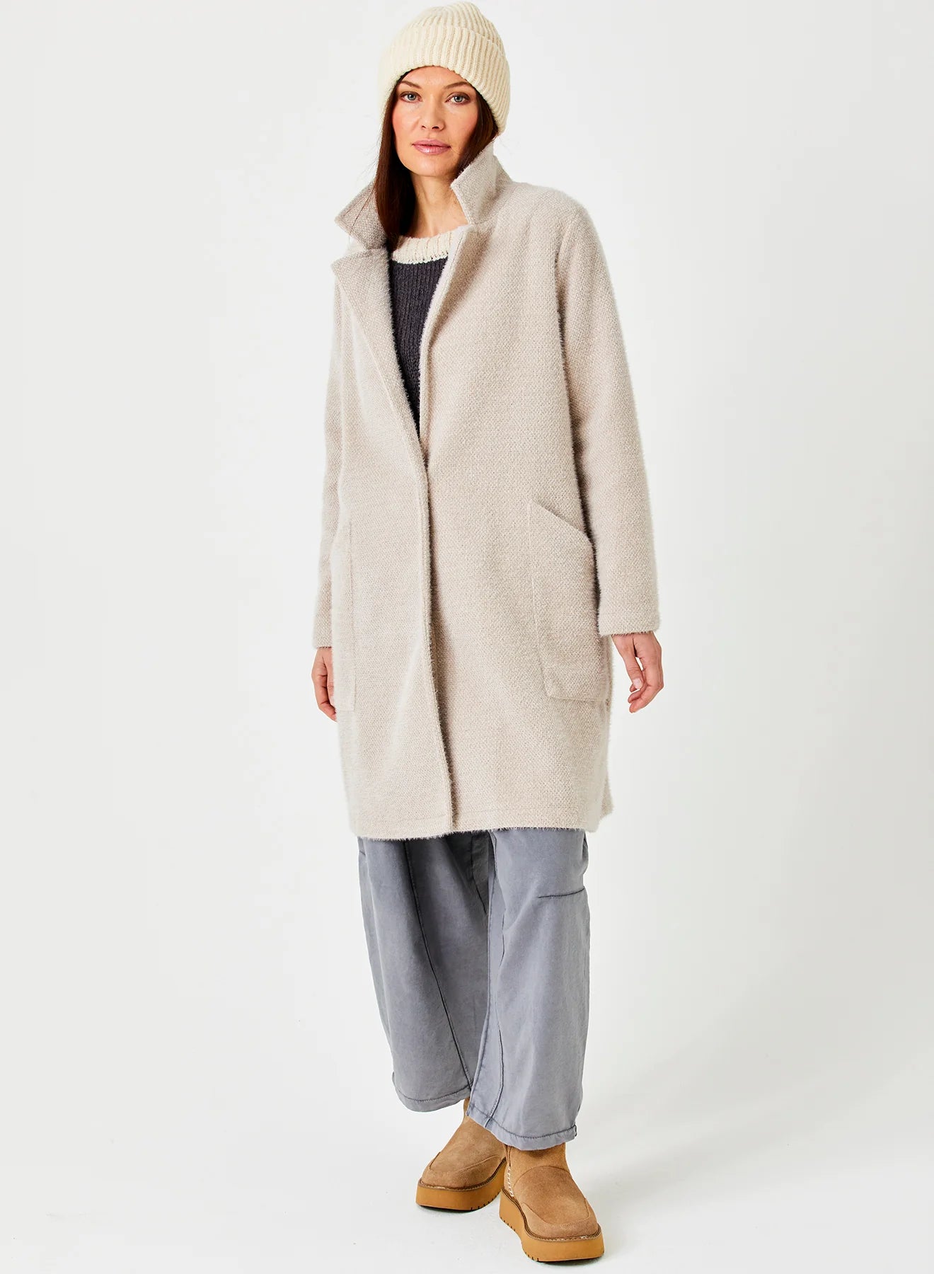 Wrap yourself in cozy joy with the Iris Fluffy Coatigan. In a delightful mushroom hue, this soft and warm piece feels like a gentle hug, perfect for chilly days. Its fluffy texture invites endless snuggles, while handy pockets keep your hands happily tucked away. Embrace comfort with a playful twist and make every moment a little cozier.