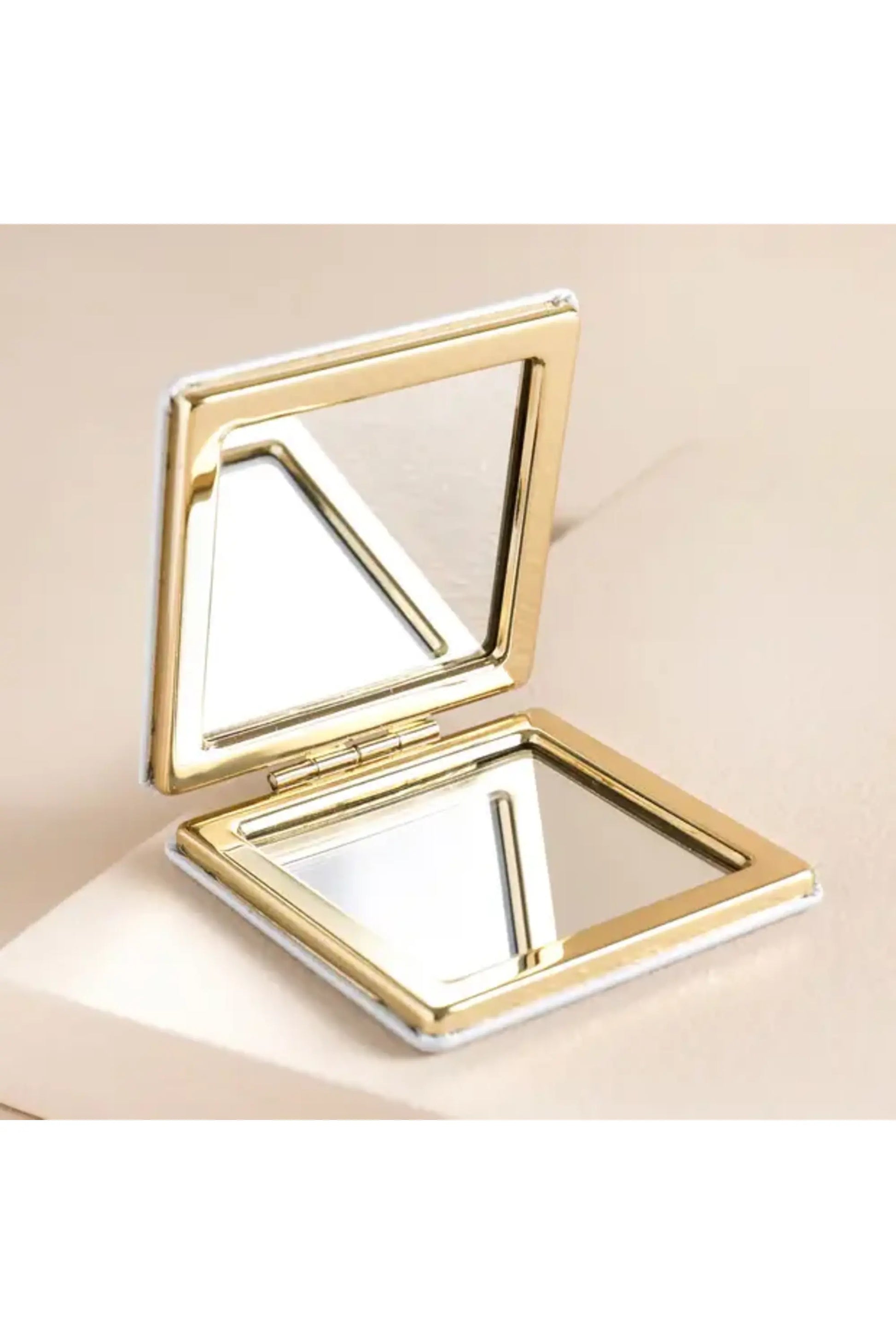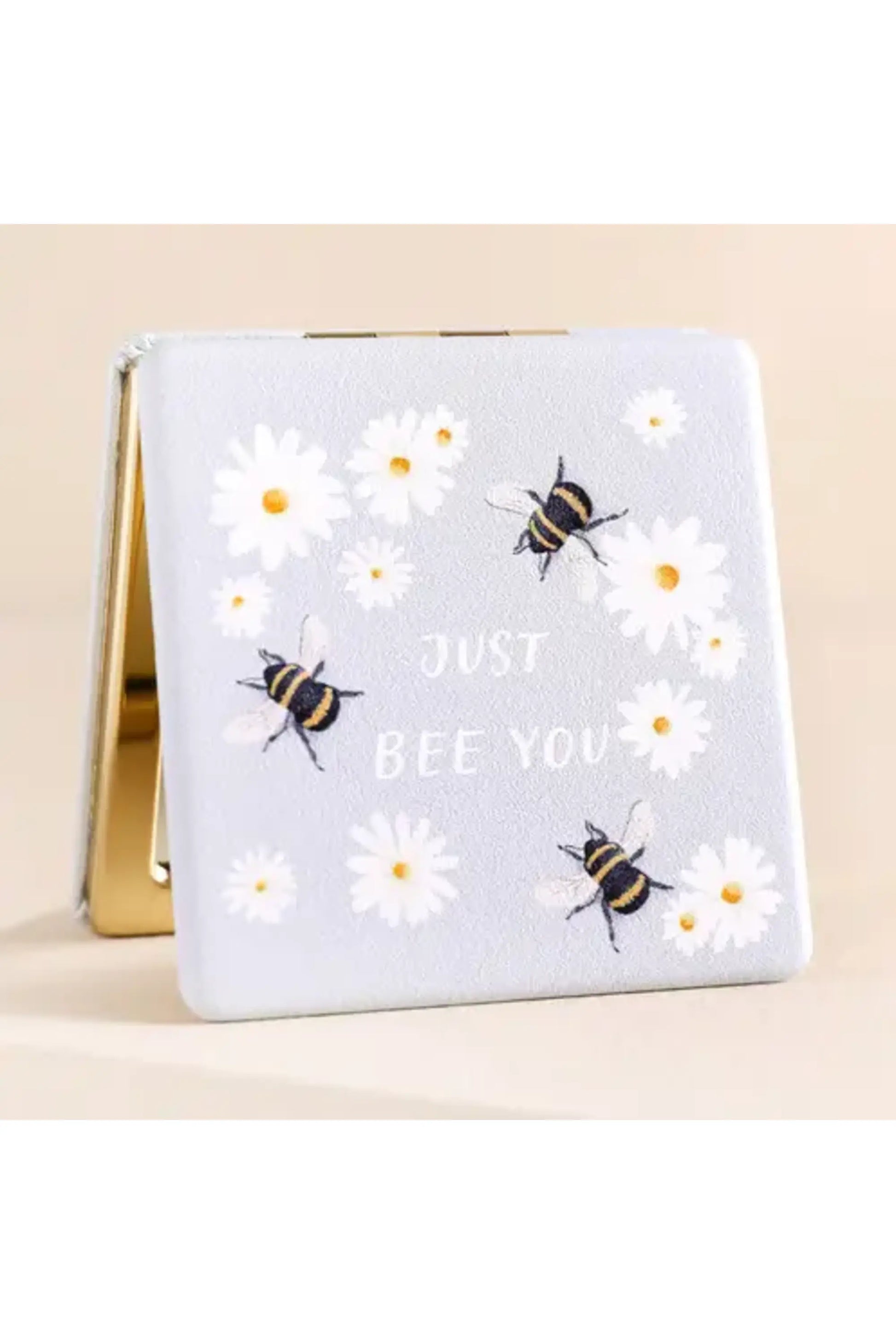 With a pale blue vegan leather exterior, this sweet little mirror is adorned with cute daisy and bee motifs, before being completed by a quote to remind you to be authentic to yourself. Opening to reveal a close-up and standard mirror edged in gold.