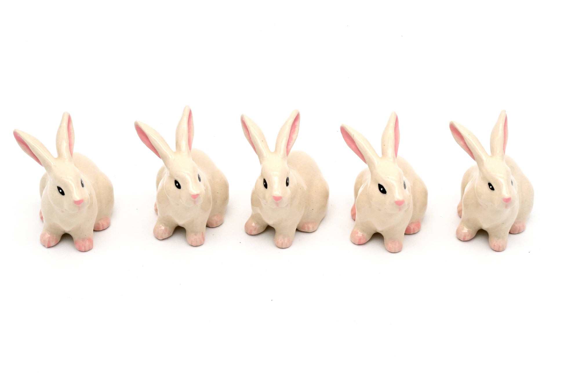 Miniature Ceramic Tiny Small White Rabbits | Individual