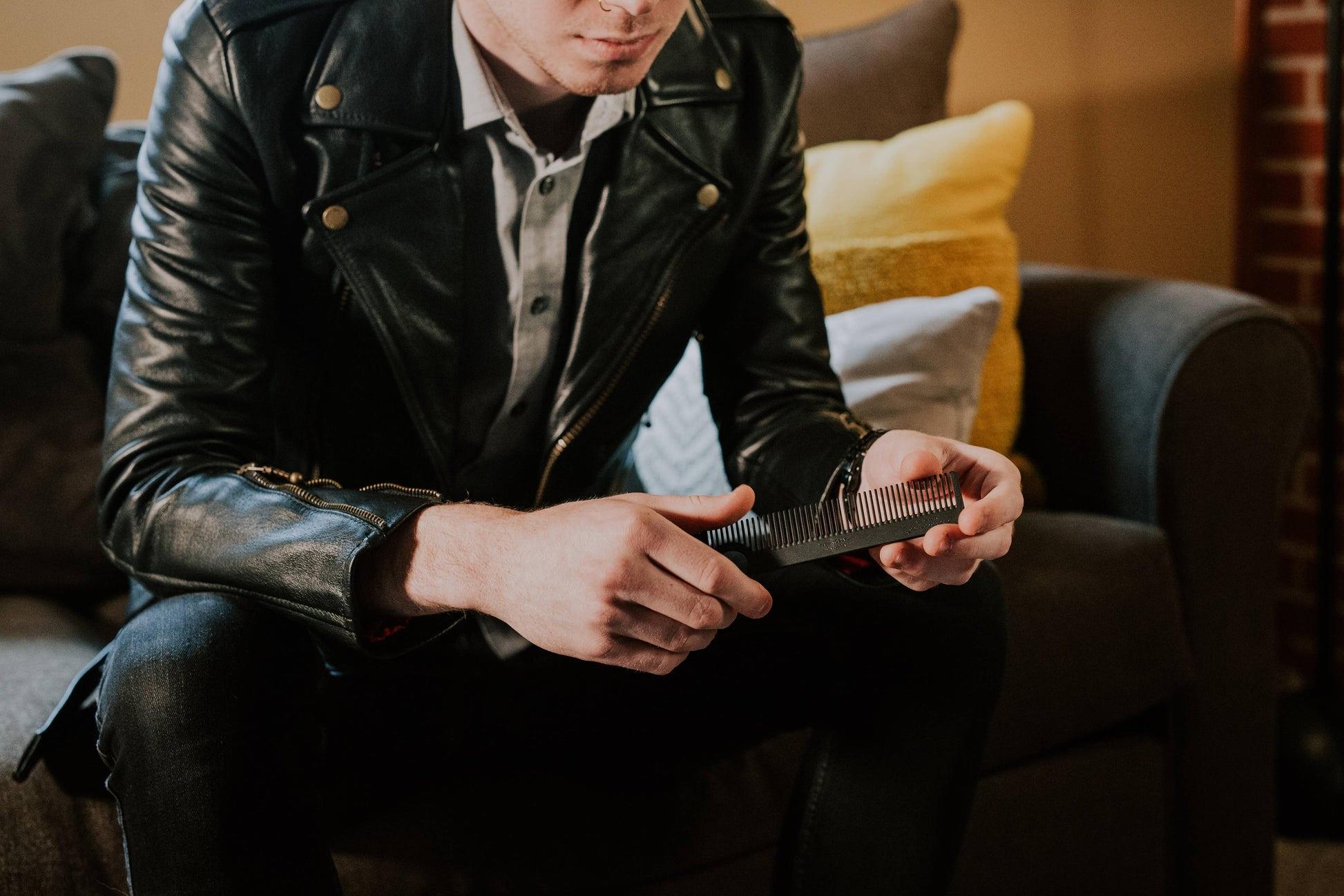 The amazing Model 1 Carbon Fiber comb has a patented design with a loop at one end to hold the comb while combing the hair, or to hang up the comb after use. With medium-fine teeth, it's the perfect comb for everyday use and easily fits in your pocket or travel bag. 5.5" (14 cm) long and 1.25" high (3.2 cm) (slightly higher the end where loop is located)