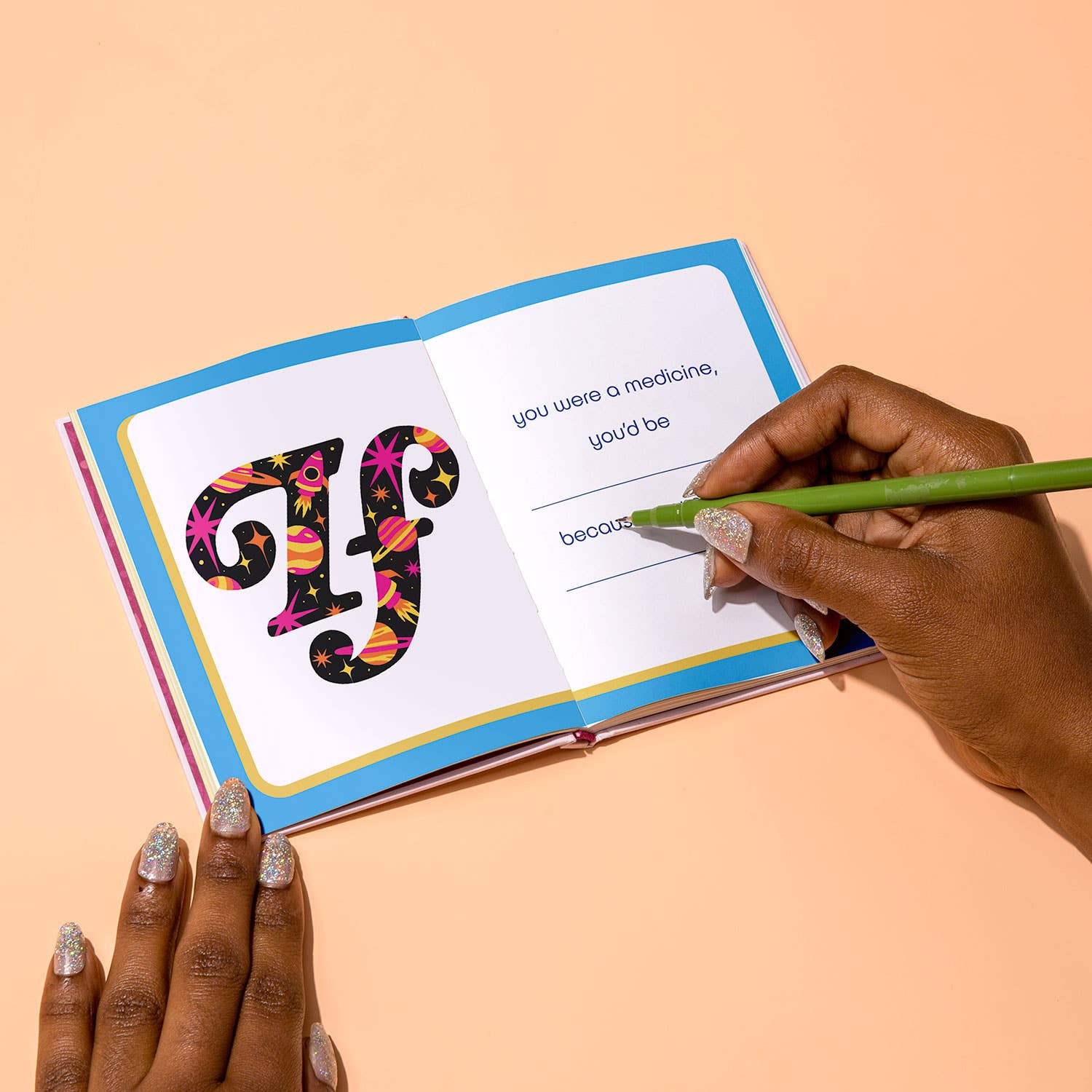 • This fill in the blank book makes it easy to express your many-splendored love!