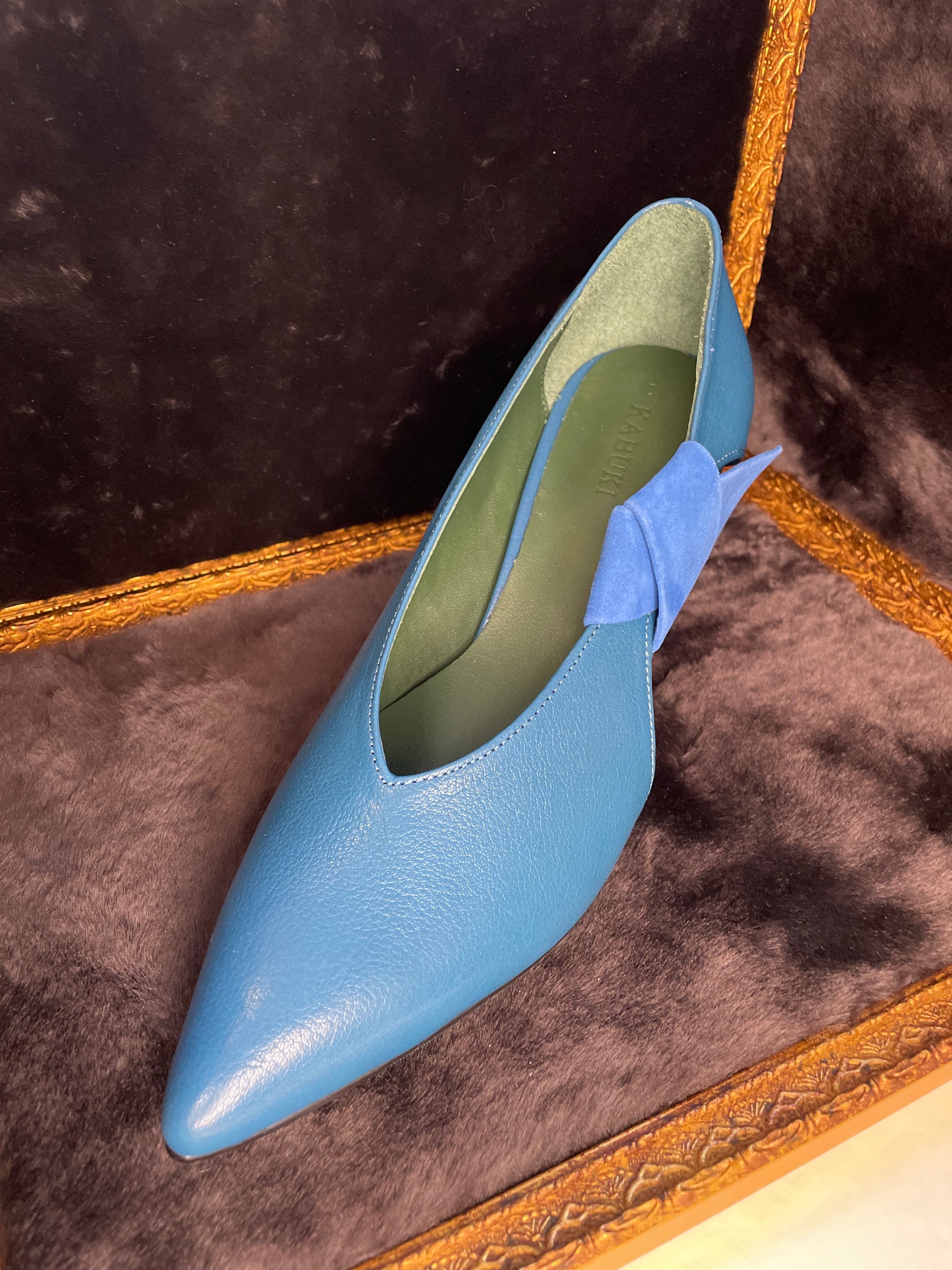 The Ribbon High Heel is a stylish blue heel with a small ribbon on the side. It is easy to style for any occasion. Dress up or down.