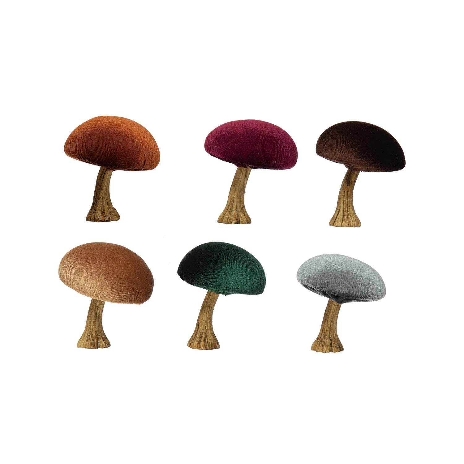 Get ready to add some whimsy to your home with our 3-1/4" Round x 3-3/4"H Velvet Mushroom! This playful piece features a resin stem and comes in 6 charming colors.
