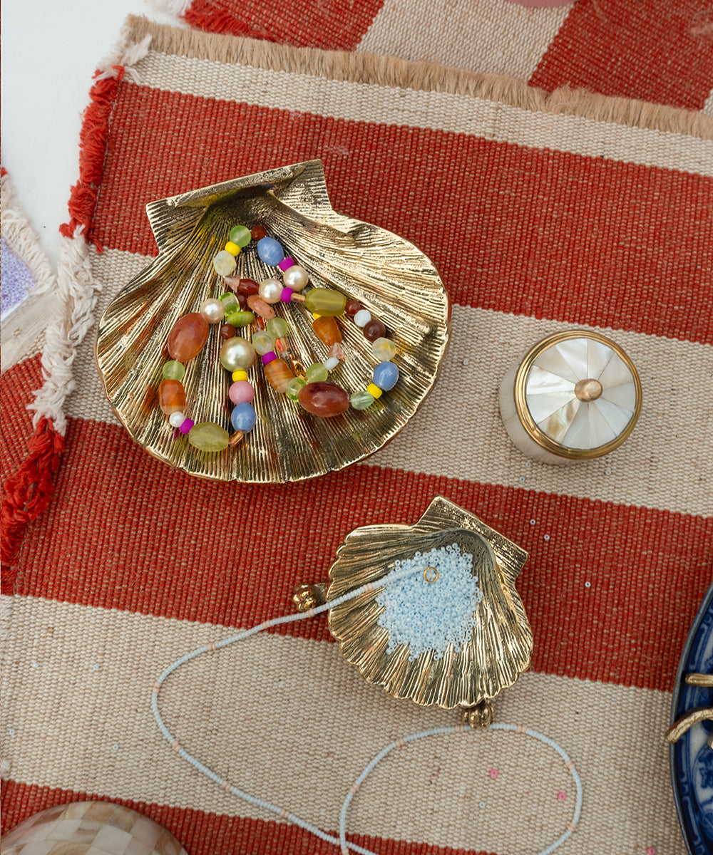 Step into the coastal vibe with the Scarlett Shell Plate Large, a standout piece from our Sunray Souvenirs Collection. Lovingly handcrafted by our team of artisans in India, this brass trinket plate captures the essence of the sea with its shell-like form and texture. It's a spacious and decorative spot for all your collected curiosities.