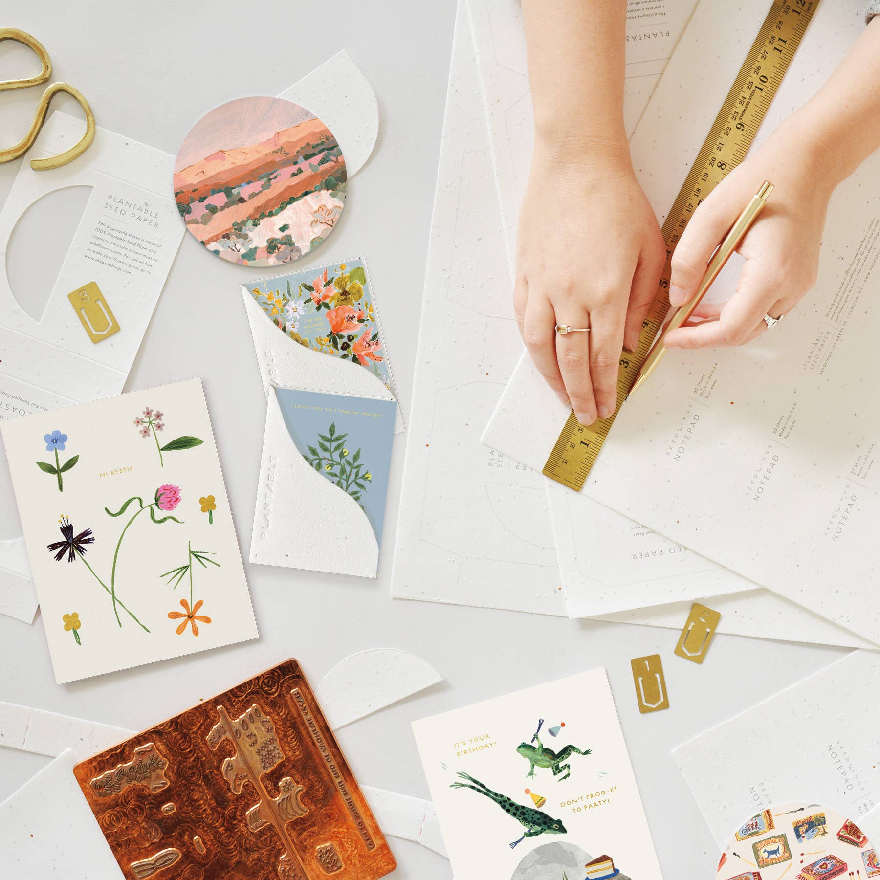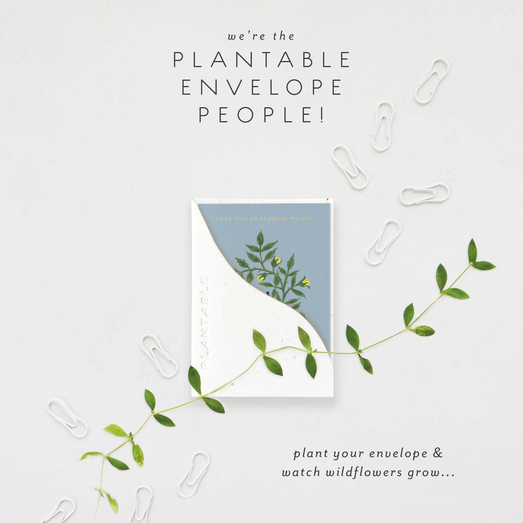 Meet the newest little SPROUT! Think all the goodness of our full size greeting card BUT at a petite "mini me" and super cute enclosure card size. All Seedlings sprouts have foil details and a PLANTABLE seed paper envelope which is embedded with wildflower seeds. This seed paper is made of a biodegradable eco-paper created with post-consumer materials - no trees harmed for this paper! When planted, our envelopes compost away leaving only flowers behind. Blank inside, our mini greeting cards are printed on premium paper and are all accented with foil details. Need a display? Order SPRDIS24 for a 24 pocket tabletop spinner. Card size: 2.5" x 3.5" All Seedlings cards are made in the U.S.A.