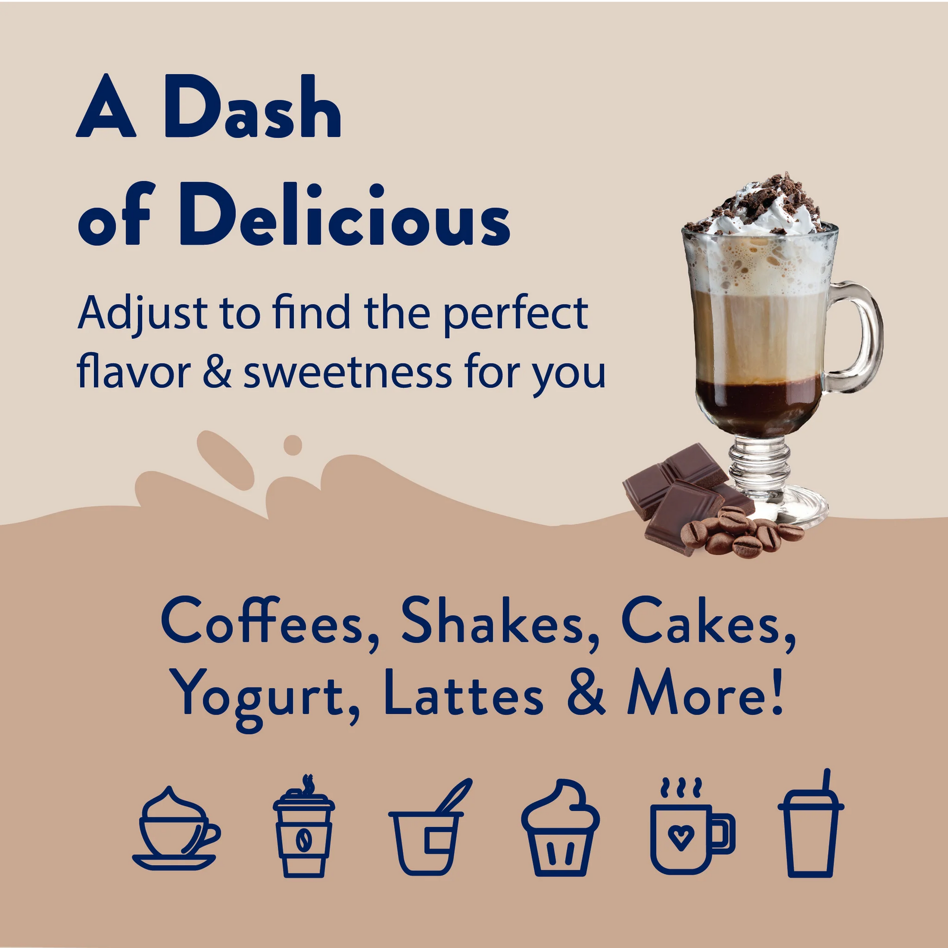 Give in to temptation with the velvety smooth taste of salted dark chocolate with a touch of espresso flavor. Add guilt-free flavor to coffees, lattes, tea, protein shakes, smoothies, baking, oatmeal, or just about anything.