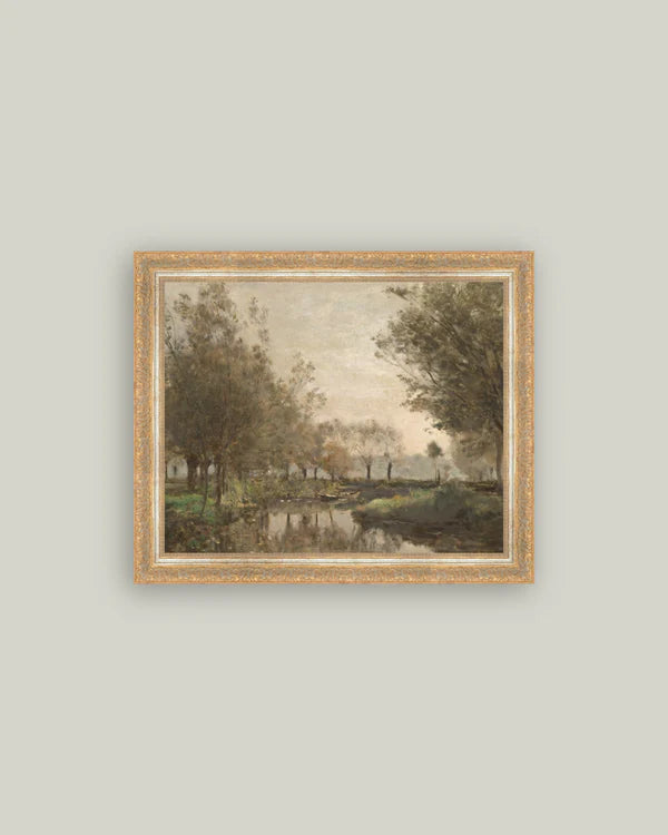 This vintage artwork is printed on raw canvas and placed in an antique frame for an authentic, timeless look.