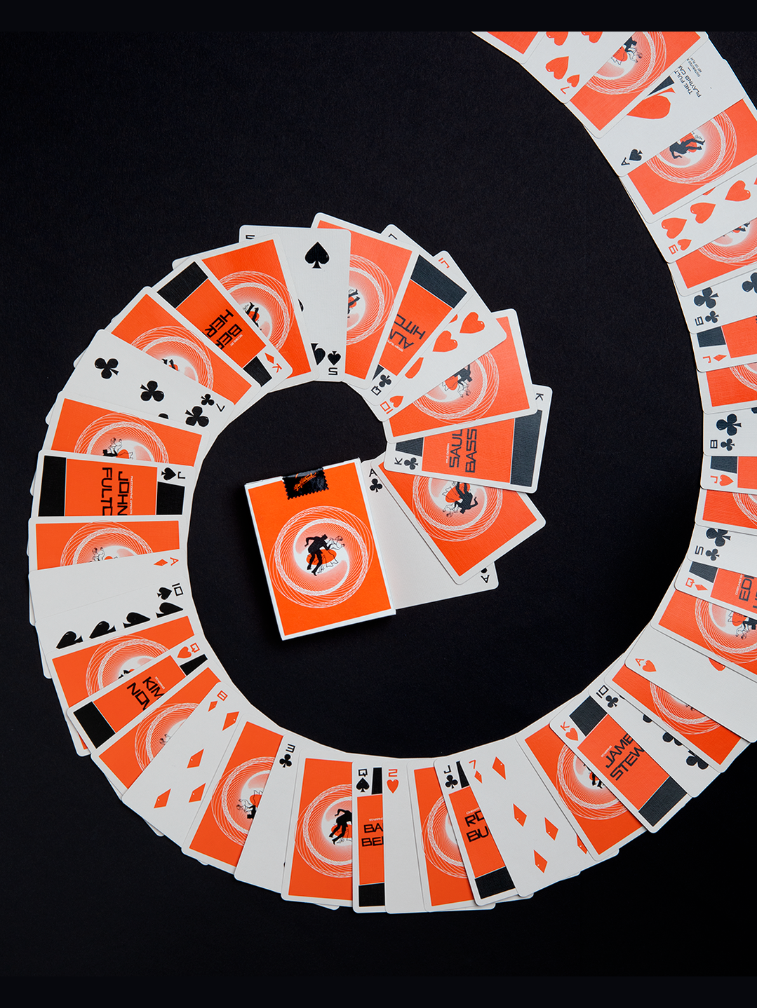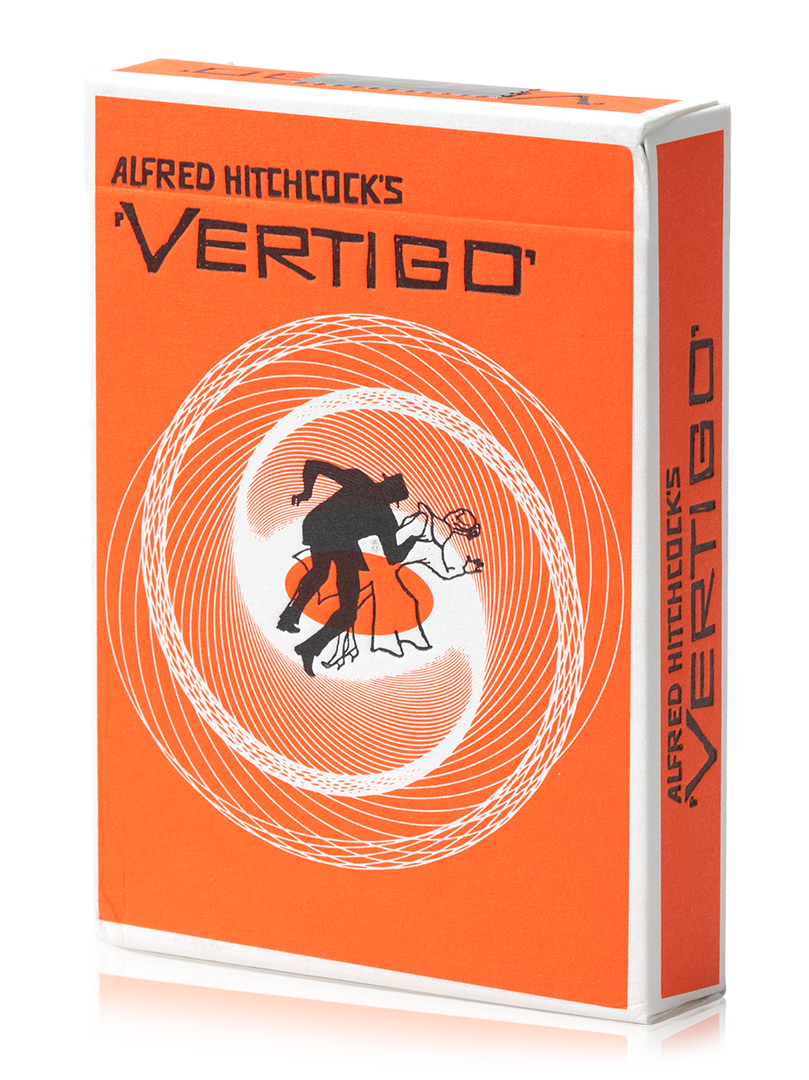 The completely custom design (from the pips to the courts-these cards) celebrates the iconic film by one of the greatest film directors of all time. Each court card is designed as a title card to pay tribute to the great Saul Bass, who created the iconic "Vertigo Spiral" and the gripping title sequence.