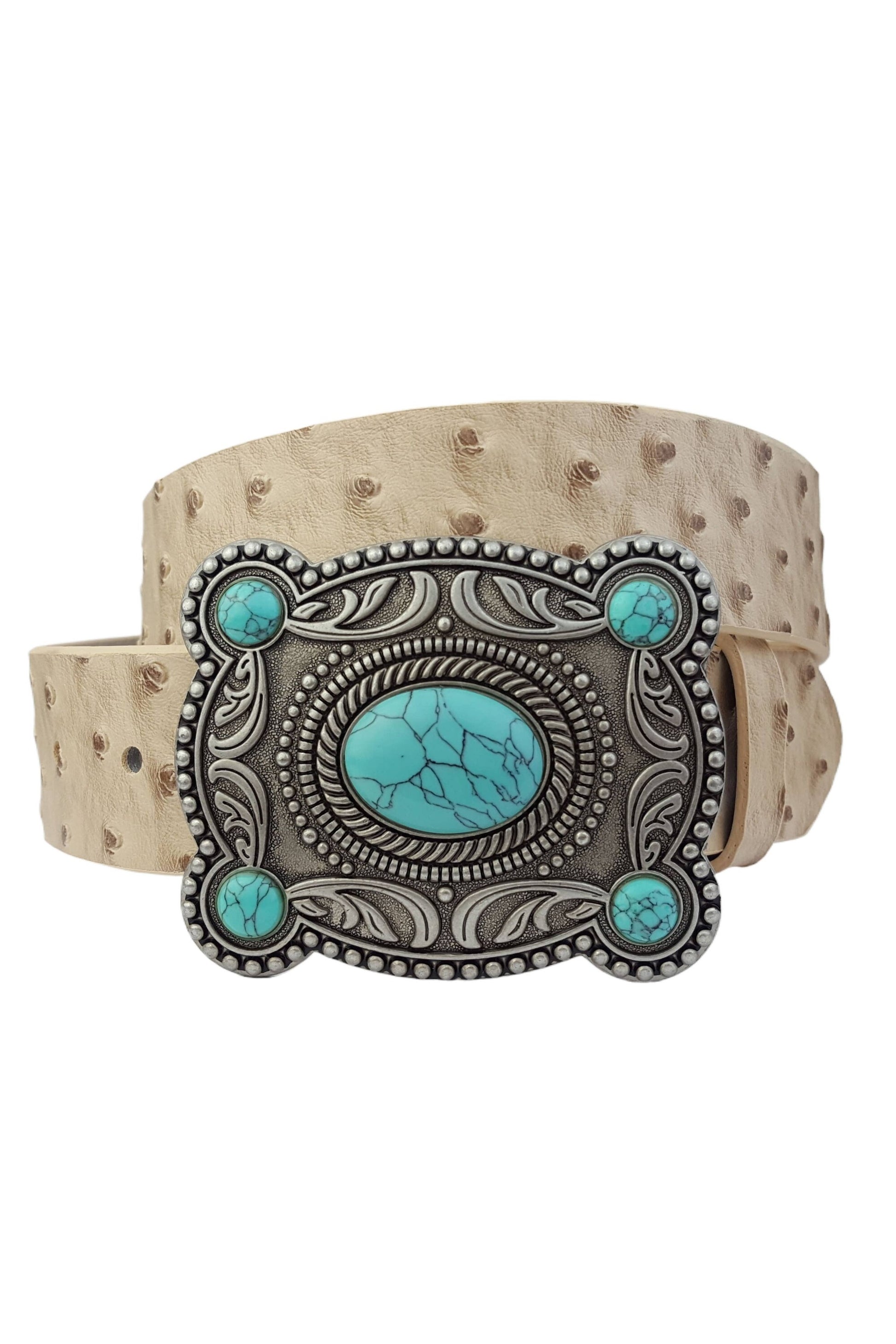 Western Silver Turquoise Buckle w. Ostrich Belt
