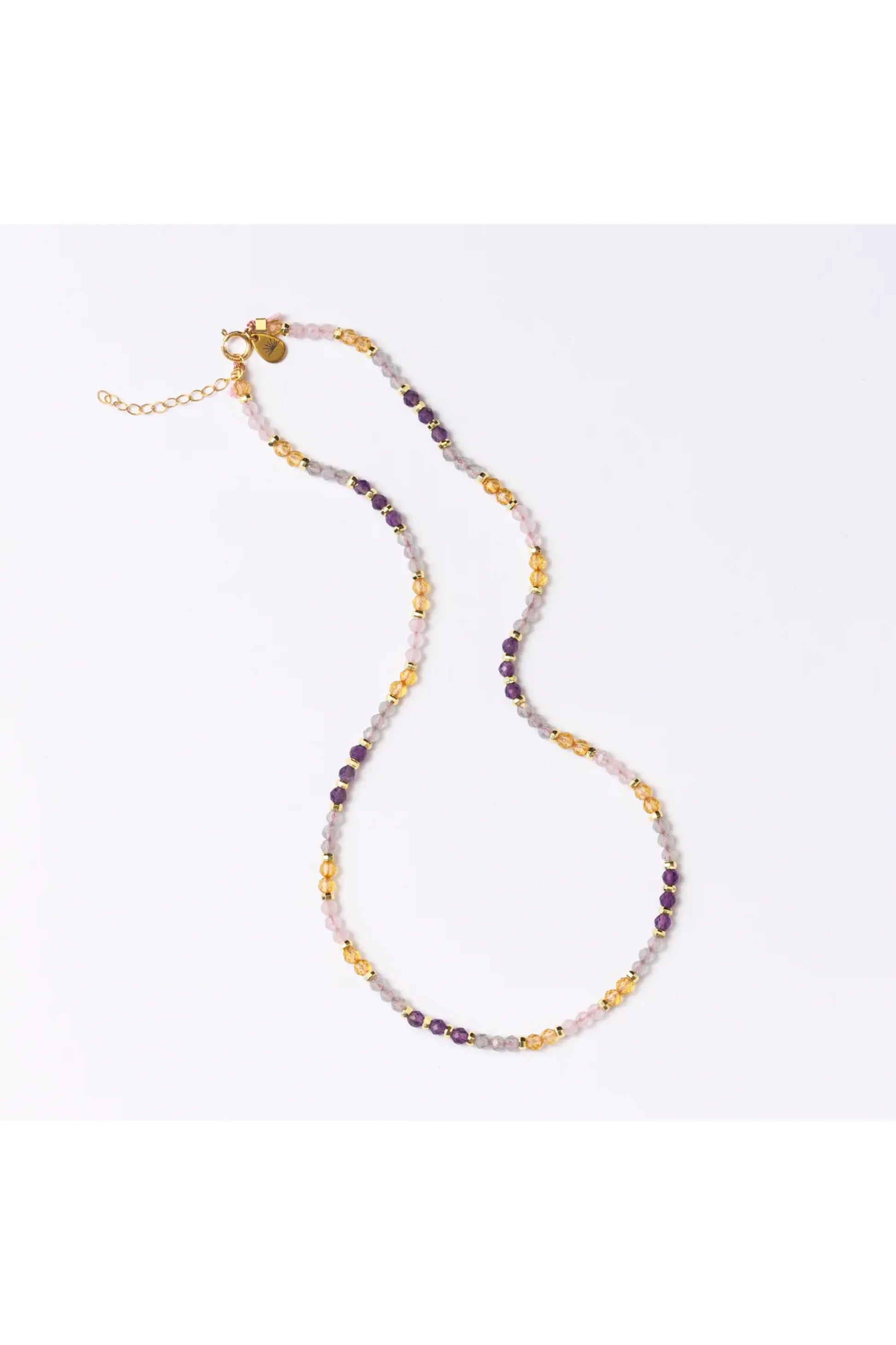 Made with Amethyst for inner peace. Rose quartz for unconditional love. Citrine for joy and abundance. Labradorite for manifestation and protection.