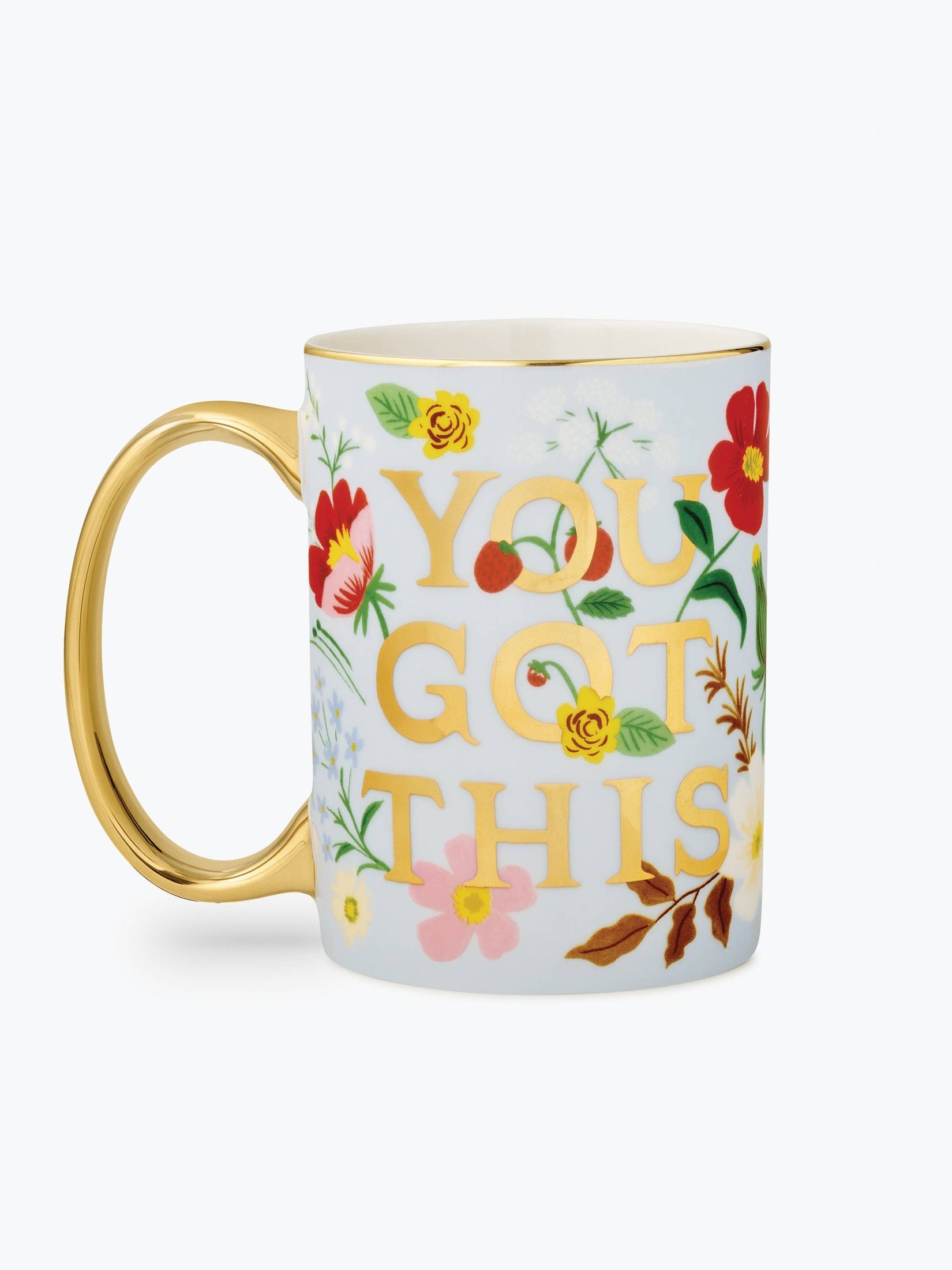 A cup of confidence every morning. Our porcelain mugs feature illustrated designs and a gilded rim and handle to add a little something special to your favorite beverage.